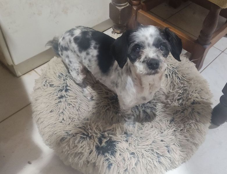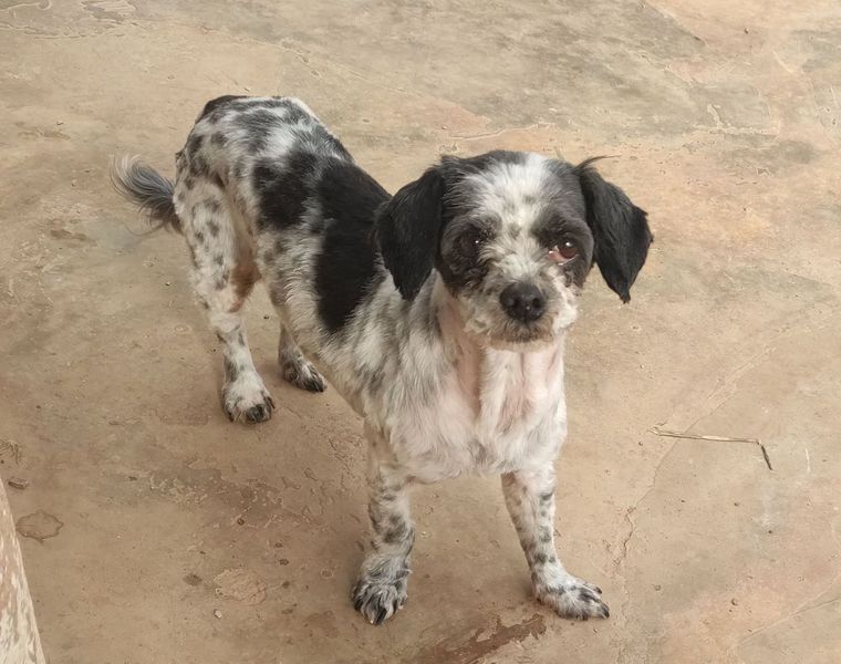Die kleine 4 kg wiegende und geschätzt 11-12 Jahre alte Hündin Puppet wurde mit dem Malteserrüden Leo bei schlechtem Wetter zu Jahresbeginn auf einem verlassenen Feld aufgefunden, das geflutet werden sollte. Eine alarmierte Tierschützerin nahm die beiden Hunde bei sich auf.