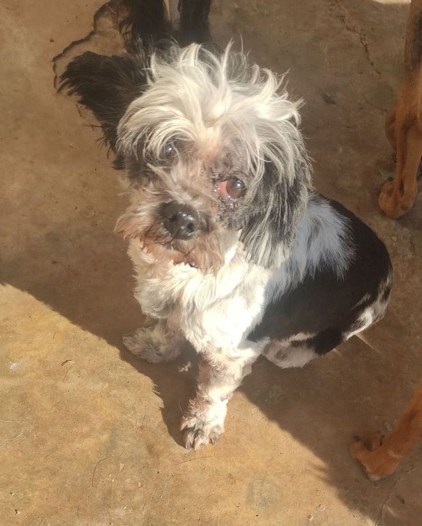 Da Puppet weiterhin behandelt wird mit Medikamenten und Spezialfutter wegen einer Blaseninfektion, Arthrose und mit Augentropfen steht Puppet aktuell nicht zur Vermittlung. Gerade das Verabreichen der Augentropfen und das Säubern des Gesichtes von der Tränenflüssigkeit macht es der Betreuerin nicht leicht. Aus Angst vor Händen, die ihr Schmerzen zufügen könnten, kann Puppet immer noch leicht zuschnappen. Wer mag es ihr verdenken.