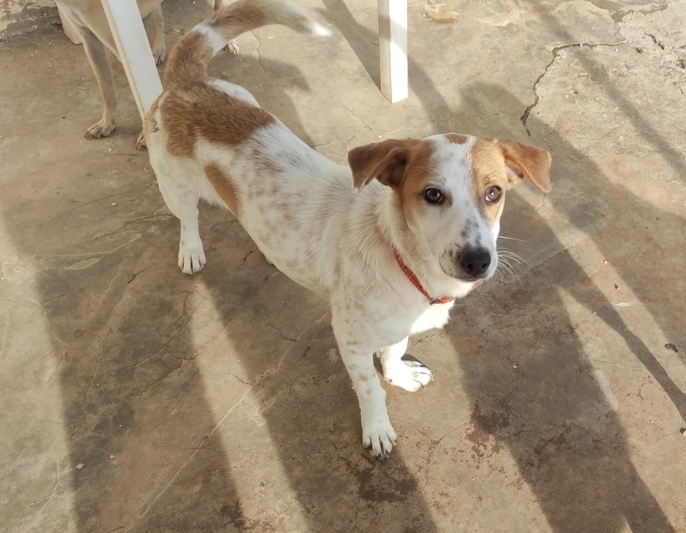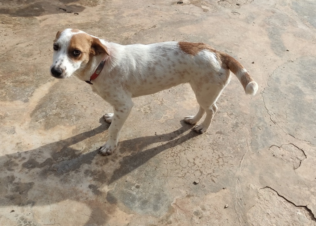 Lima ist eine kleinere bis mittelgroße Hündin mit 33-35 cm Schulterhöhe und 7-8 kg Gewicht. Sie wurde vom Tierarzt auf 1 Jahr geschätzt und ist inzwischen natürlich voll geimpft und kastriert.